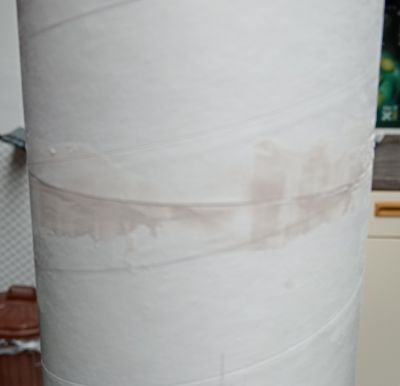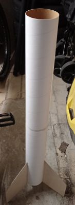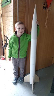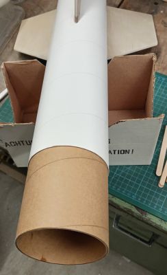 Nachdem sich das Epoxy unten gesammelt hatte, konte ich es -durch Bewegen der Rakete- an den zu klebenden Kanten entlangfließen lassen. Das hat recht gut funktioniert, wenn es auch ein wenig viel Epoxy war...