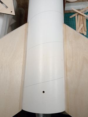 Ich habe mittlerweile die Flossen abgerundet. Alles händisch mit 120er Schleifpapier. War bei dem Flugzeugsperrholz nicht gerade eine einfache Sache und ein Bandschleifer steht jetzt auf meiner Baumarkt-Liste