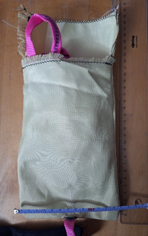 Ich könnte als Reserve ja mal meinen 4 Zoll Kevlarbeutel mitbringen, ganz einfach genäht, selbst ohne Schlaufe, weil es durch ein innenliegendes Kettenglied "nach unten" gehalten wird. Besser als nix! Gruẞ, Alex |