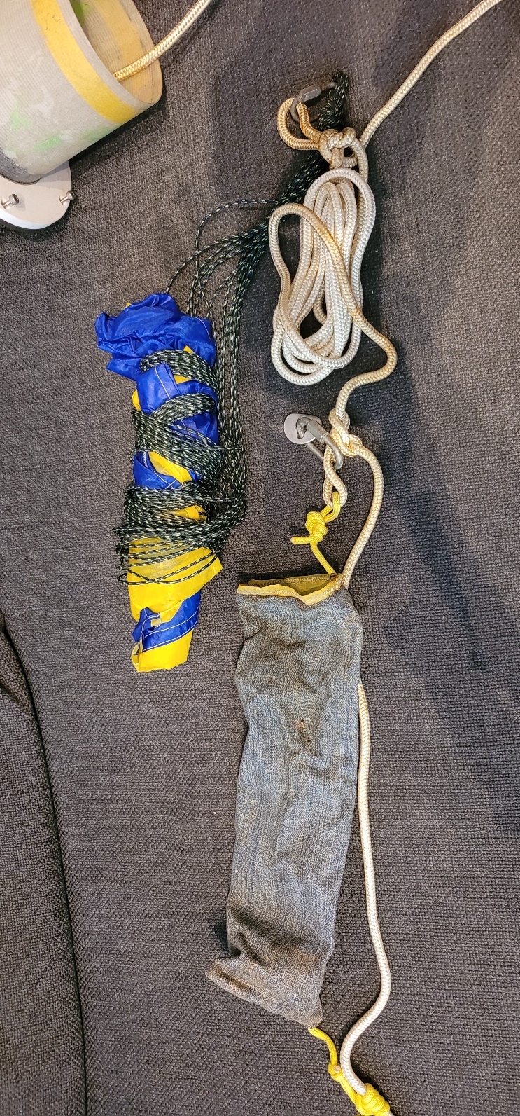 Die schaut wirklich klasse aus! Aber ich weiß wie viel Arbeit da drin steckt, das sowas herauskommt und sträube mich noch die Lackierung von meiner anzugehen Zum Sack: so wie das Setup mit dem Pyro Release ist, ist es empfehlenswert, den Sack am offenen Ende am Pyrorelease aufzuhängen. Andernfalls wird der Fallschirm beim Start aus dem Sack rutschen und zumindest teilweise mit dem Vorschirm herauskommen. Ich habe bei meinem Fallschirmsack ein durchgehendes Seil (gelb) entlang einer Seite eingenäht. So kann ich den an der Schockleine parallel fixieren (damit der Schirm gerade herausgezogen wird) und ihn auf der offenen Seite an der Lasche vom Pyrorelease anknoten: Hat bei 3 Flügen super funktioniert, der Fallschirmsack ist außen Jeans innen Ripstop Nylon, da rutscht der Schirm wie von selbst raus! Viele Grüße Roman 'Technisch gesehen hat alles funktioniert!' -Ich (oft kopiert) |