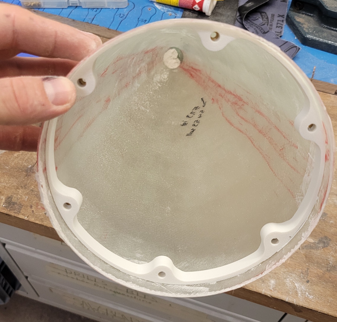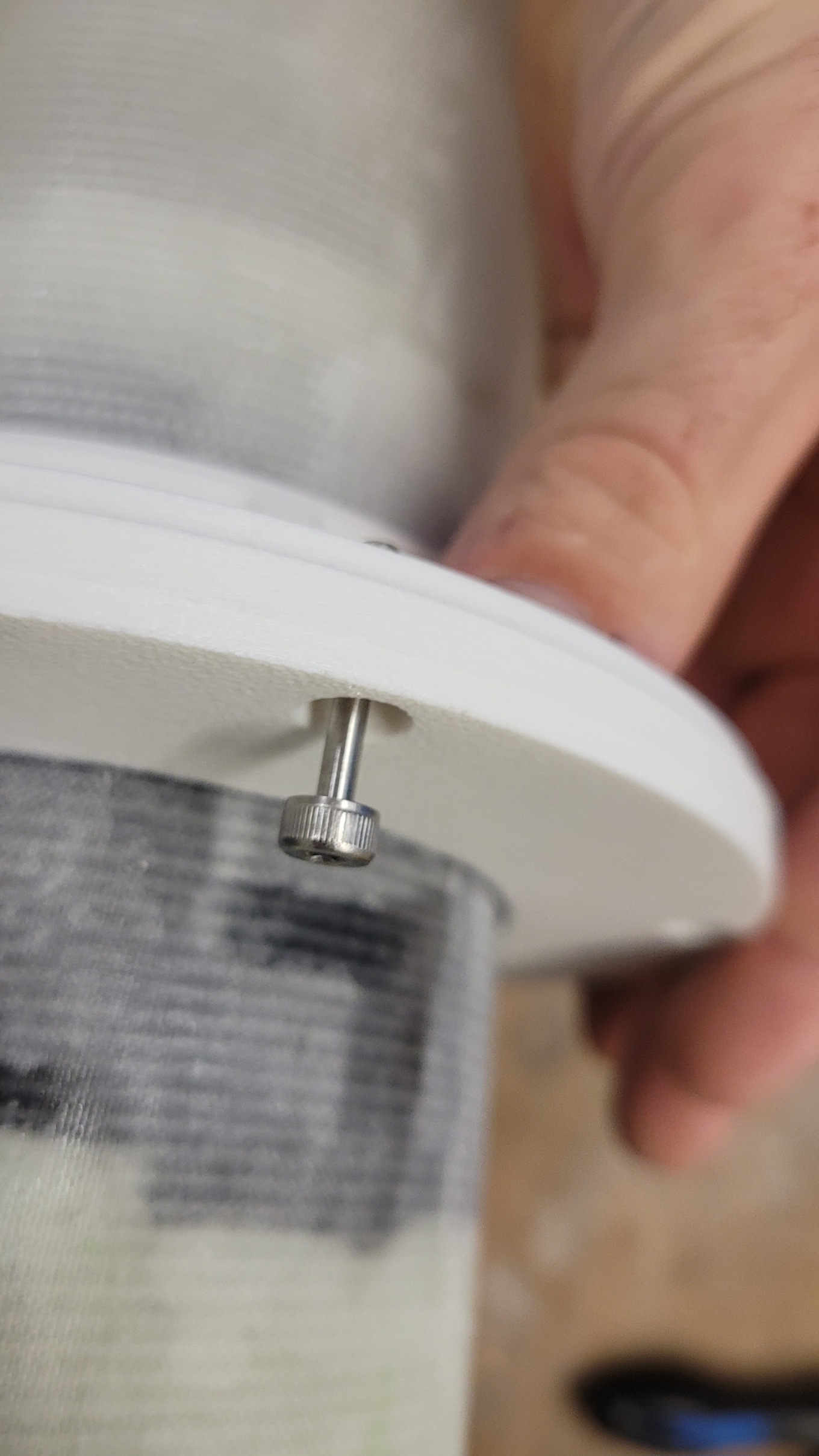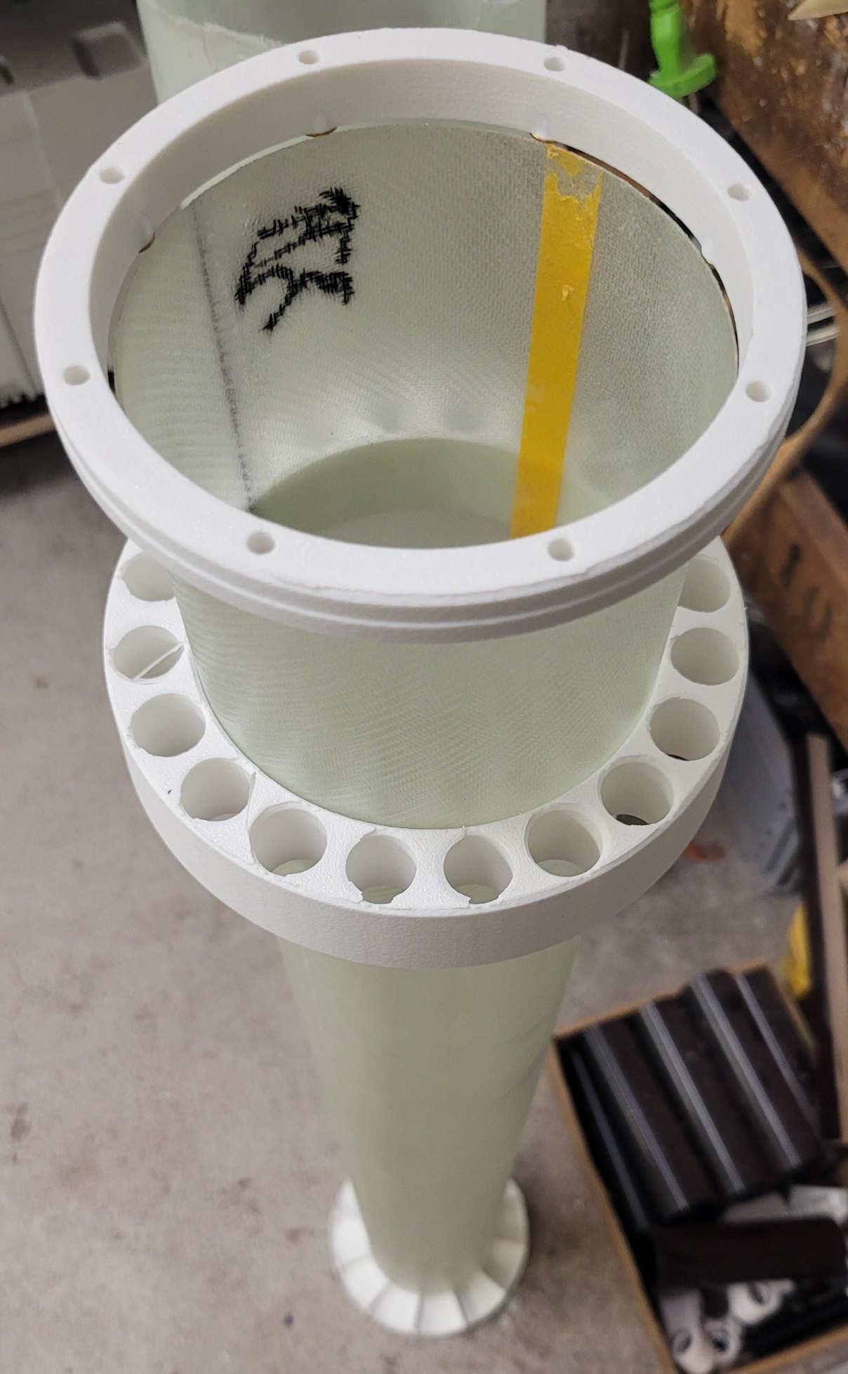 Die Verlängerung des Körperrohrs passte leider nicht so ohne weiteres, denn scheinbar ist die Urform in dem Bereich den ich fürs laminieren verwendet habe minimal konisch. Deswegen ist der Kupplerteil leider ca. 1mm zu groß (auf ca. 170mm Durchmesser). Bei ~1mm Laminatdicke ist das nicht mal eben weggeschliffen, stattdessen habe ich den Kuppler längs geschlitzt und werde ihn so auch verkleben: