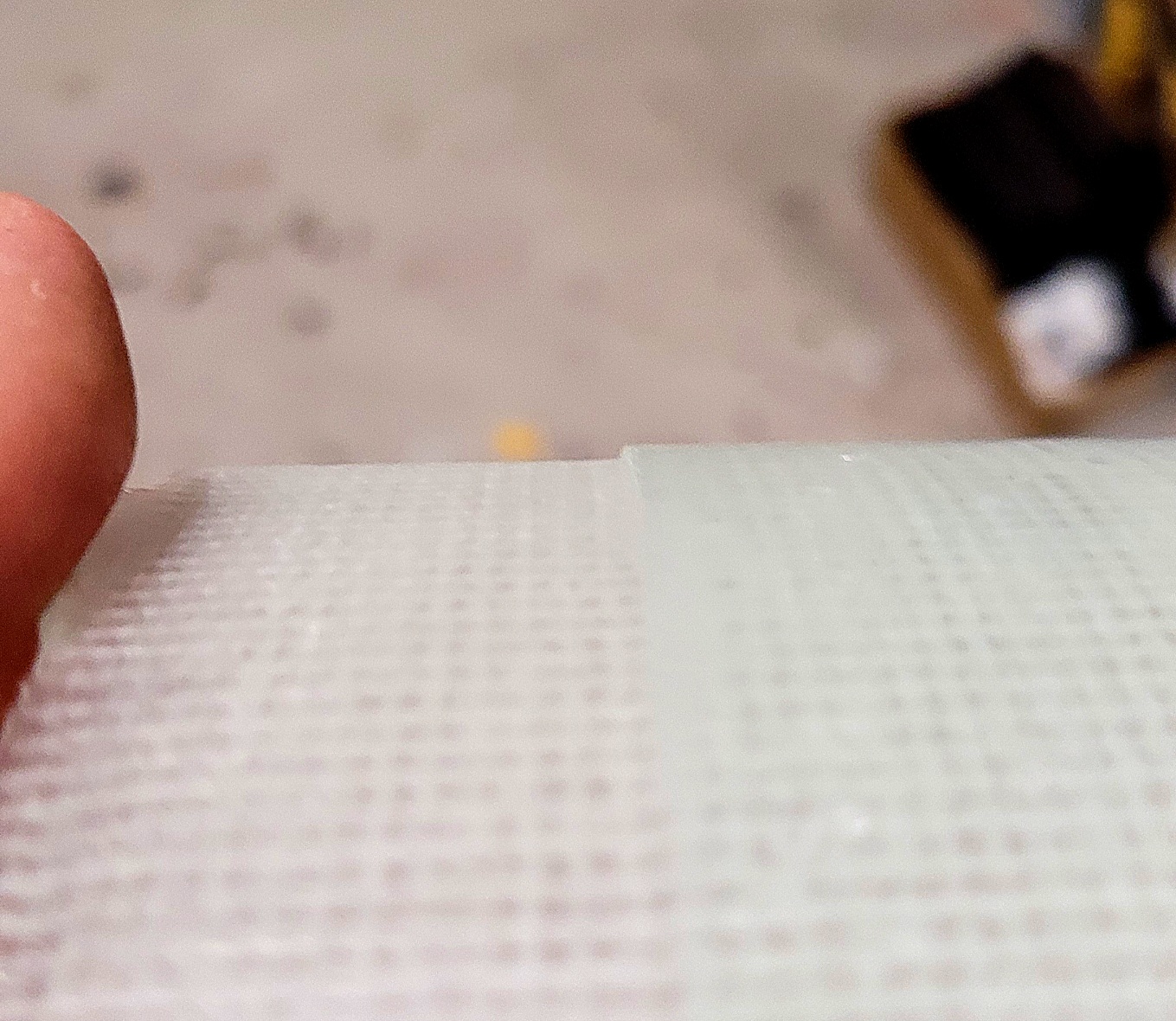 Beim Laminieren habe ich die Kante mit Glasfaserschnitzeln und viel Harz ausgefüllt und so einen Übergang für das Gewebe geschaffen ohne das es hier Blasen oder Falten gibt.