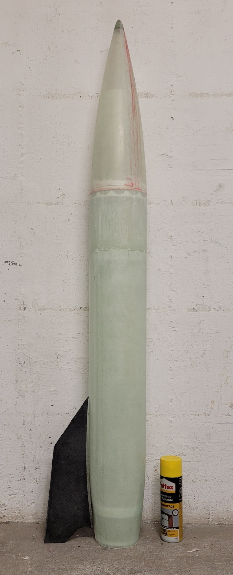 Zwischen Spitze und Innenrohr ist genug Platz für die Bergungselektronik und evtl. Nutzlasten smile