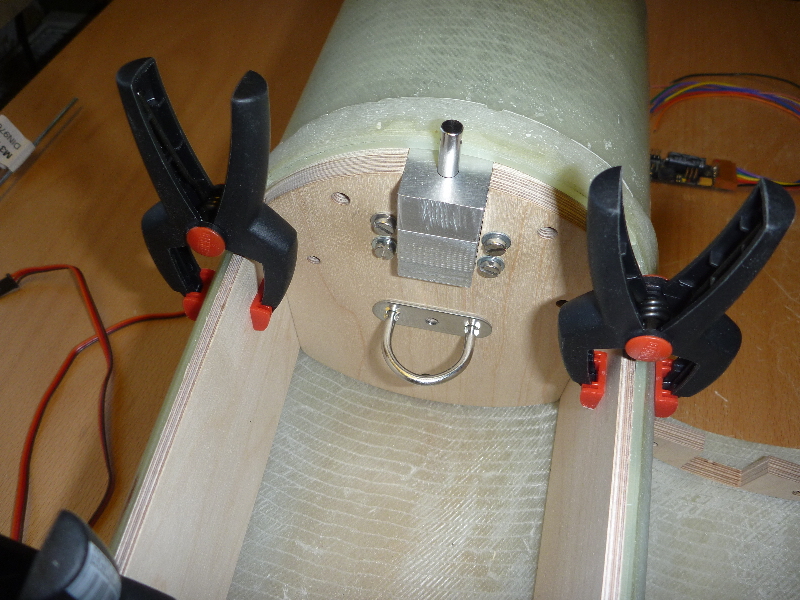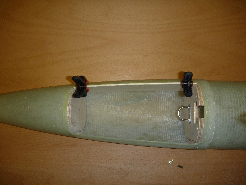 Ich arbeite mich so langsam von Oben nach Unten. Die Gewindestangen sollen den Eröffnungsschock des Hauptschirms in den Rest der Konstruktion einleiten: Die Messingröhrchen dienen später als Führung der Haltebolzen der Hauptfallschirm-Klappe: Viele Grüße Dennis