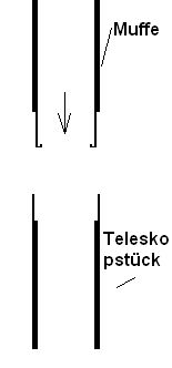 Hi Hichi, Das ist mir auch schon ein Paar mal passiert, vor allem bei den 1,5l-Flaschen. Ich hab dann die Klebestellen noch mehr geschliffen, soweit dass die Muffe dünner wurde, und das Gegenstück einen größeren durchmesser bekam. halt nur im 10tel mm-bereich. Dadurch lassen sich die teile um einiges besser zusammenschieben. Ich denk mit der skizze wirds deutlich. Wenn du meinst dass die Muffe einknickt, mehr schrumpfen, oder die eingeknickte stelle irgenwie verstärken (holzstäbchen reinklemmen), Muffe kürzen und nochmal versuchen, oder dünner schleifen. Meinen Erfahrungen nach. Wegen der dichtigkeit: Wenn man aus Einfriertüten eine riesige Tüte schweißt, die einen wenig größeren durchmesser als den innendurchmesser der Rak. hat, müsste das dicht werden. Die tüte dürfte nicht reisen, weil die Kräfte von den Flaschen aufgenommen werden. Deshalb auch die etwas größere Tüte. Man muss es dann nurnoch am Gardena/Deckel dichtkriegen. Hab auch noch ne undichte Rak, bloß hab ichs noch nicht getestet. Hoffe es hat geholfen, Gruß bastler Folgende Datei wurde angehängt:
