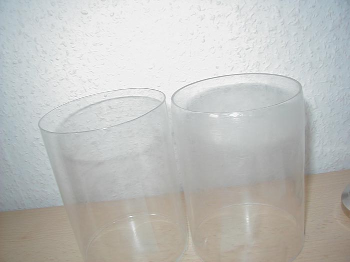 Hm, wirklich sehr komisch! Du nimmst doch die Mehrwegflaschen von Fanta, Sprite oder Bonaqua, oder? Ich hab nochmal ein Bild rausgekramt, auf dem man meine Muffen sehen kann. Rechts sieht man die geschrumpfte Muffe. Der Durchmesser an der Stirnfläche ist echt nur minimal geschrumpft. Gerade so groß, dass die Muffe in die Hauptstücke passt. Die Temperatur des Bügeleisens hab ich zwischen Wolle und Baumwolle stehen (so 75% der Maximaltemperatur). Die Muffe auf dem Bügeleisen beim Schrumpfen drehen! Mit dem Bügeleisen finde ich´s am einfachsten, da kann man das Schrumpfen am besten kontrollieren. Gruß Robert Folgende Datei wurde angehängt: