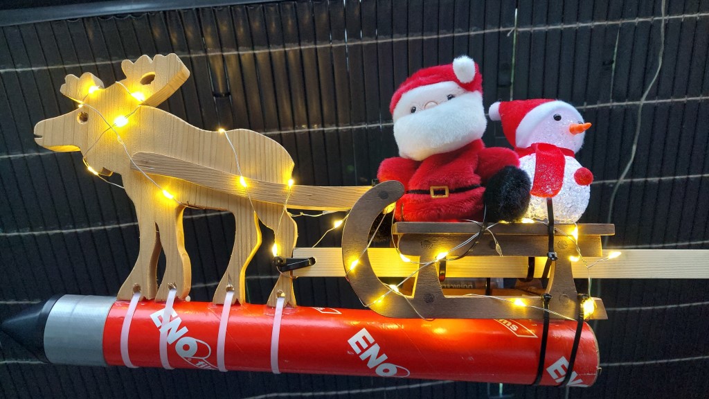 Achim mit seiner Kerzenrakete... Florins Junior hatte bei der Bergung unserer "weihnachtlichen Flugobjekte" auch sehr viel Spass und sein Zitat: "das war der schönste Tag in meinem ganzen Leben", hat uns alle sehr zum schmunzeln gebracht... Benni beim preppen... Torsten versucht uns auf der Flöte ein Weihnachtslied vorzuspielen... Und Jack meint: "früher war mehr Lametta..." Kleiner fliegender Weihnachtsbaum...