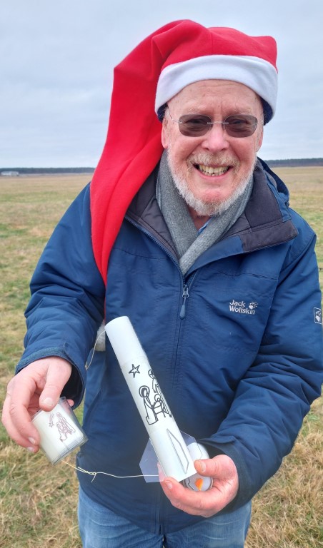 Von mir auch noch ein paar Bilder, wie immer hab ich natürlich zu wenige gemacht. Danke nochmal für die Organisation und die sehr gute Versorgung mit dem Catering. Am "Buffet" und Grill kommen alle zusammen. Raketen mit Weihnachtsmützen fliegen gut, aber die Mütze kostetete mehr Höhe als erwartet wodurch die Verzögerung der Ausstoßladung zu lang war, aber gerade noch rechtzeitig vor der Landung den Fallschirm auswarf. Andreas bereitet seinen Schlitten vor, der Flug war das Highlight des Tages - gut gestartet und links abgebogen fast parallel den Schotterweg entlang. Gruß Benni