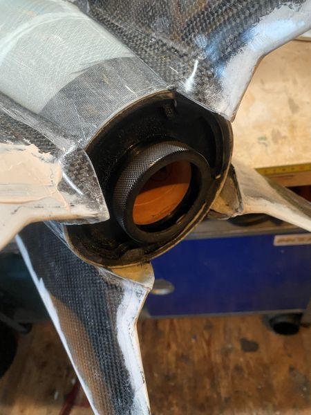 es geht ein kleines Stück weiter: Das 4" PML Rohr für das Innenrohr und das 4" Kupplerrohr konnte ich auf einer Formatkreissäge passend und pikobello winklig ablängen. Und wie der Zufall es so wollte. habe ich in einem Restekarton von mir noch ein 44cm langes Stück 54mm PML-Rohr gefunden, aus dem jetzt das 430mm lange Motorrohr wird. So muss mein schönes neues 54er Rohr gar nicht zersägt werden und kann für weitere Projekte ganz bleiben. Ist ja unfassbar, was das Zeuch mittlerweile kostet.... Hier ist das Innenleben mal lose zusammengesteckt. So soll das ganze Konstrukt später im Körperrohr sitzen. Aber am Stück geht das da nicht rein, jeder Ring möchte einzeln eingeklebt werden. Von daher geht das ab jetzt alles nur schrittweise und langsam, da jede einzelne Klebung in der warmen Küche übernachten möchte. Als erstes wird mit Hilfe von JB Weld temperaturfestem 2K Kleber aus meinem Motorrohr und dem Retainer ein Stück. Danach wird der Schubspant über das Motorrohr gesteckt und direkt auf dem Retainer aufliegend verklebt. Motorrohr mit Schubspant werden dann als ein Stück in die GFK Hülle eingesetzt, mit dem ersten Ring zentriert und verklebt. Sieht leider nicht so sauber aus, wie ich das gerne gehabt hätte, da die Harzpampe hierzu mit einem an einem Stab angebrachtem Löffel in den Tiefen des Körperrohrs appliziert wird. Egal, viel hilft viel. So sieht dann irgendwann mal das "Business End" aus Zweiter Ring aus 4mm Birke Dritter Ring aus 6mm Multiplex, hier endet das Motorrohr und beginnt das 4" Innenrohr Auf dem Ring eine Aufdoppelung aus 4mm Sperrholz als Zentrierung für das Innenrohr und als Verstärkung für den Aufhängepunkt der Schockleine. Unterhalb und oberhalb, (deswegen schaut das Motorrohr etwas durch den Spant hindurch) sind kurze Stützringe aus Phenolrohr aufgeklebt. Ich habe schon wesentlich massivere Aufhängepunkte gebaut, aber da war das Gewicht der Zelle auch drei, viermal höher. Das wird halten. Zwischen den Ringen müssen jeweils auch die Halter für die Railbuttons eingeklebt werden, da sonst die Ringe nicht mehr daran vorbei passen. Dazu habe ich M4 Gewindemuffen in einen Halter aus zwei Lagen Sperrholz eingeklebt und die so vorbereiteten Platten mit ordentlich angedicktem Harz und Glasmatte eingeklebt. Mit einer Schraube und einer Hülse wird der Halter in Position gehalten bis das Harz fest ist. Soweit Jan Geändert von Kabelmann am 19. Dezember 2025 um 23:17 |